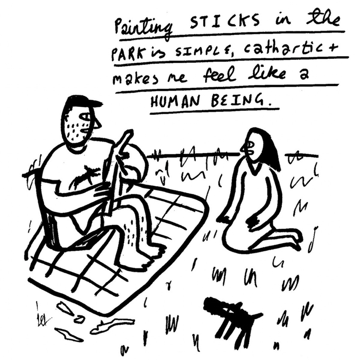 When I first painted sticks in Regent’s Park one of the most frequent questions that I would get asked is “What are you doing this for?” or “What are you hoping to get from this?” Occasionally I would get some unsolicited advice that I should start selling the sticks or set up an Etsy shop to make a profit from them. (I was simply painting sticks because I was bored, lonely, house-sitting in Camden and with only black and white paint which felt like a good enough reason to be doing it.) I was doing it “Just for nice”.*